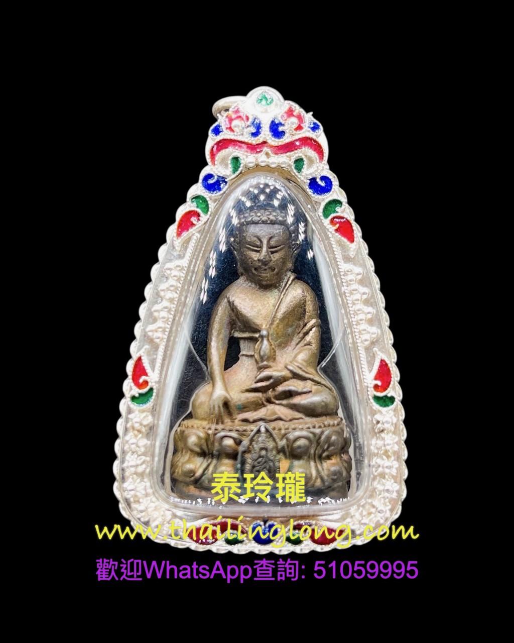 此尊 2536 藥師佛 小立尊 虎衛軍/泰后生日紀念版 (九寶銅), 於佛曆2536年(1993年)由"東北著名聖僧"(龍婆官)親自督製開光而成, 此期"藥師佛"是屬於泰國政府(皇后旗下- 虎衛軍隊的師長)策劃的一批佛牌,策劃開光此期"藥師佛"目的除了幫助籌款給(公共相關技術推廣基金會)外, 亦是為了紀念皇后60歲生日的版本,所以此批"藥師佛"又名為"Sor Kor"意思是"虎衛軍"名字的短寫~ 此藥師佛, 亦經歷了兩個大法會加持後,才正式出廟~ 第一個法會在 [屈怕史]寺 舉辦, 當時有超過百位高僧一同參與加持開光, 而第二個法會於2536年(1993年)12月23日, 在 [屈班麗]寺,由"龍婆官"帶領下 與[屈朗泰-龍婆再]/[屈靜洛-龍婆念]等一眾高僧, 再次加持開光~ 至今此批"藥師佛"亦是師傅開光唯一的一期與皇后有關的聖物, 材料包括有由皇室/虎衞軍,提供的老舊牌碎及金屬, 牌前是傳統藥師佛坐蓮花的法相,較為特別的是,蓮花的法座位置,印有"皇后虎衛軍的徽章", 而佛身的背下位置印有"龍婆官的法名", 此牌適合不同行業的善信們佩戴,特別是祈求健康/平安/ 生活順利為主要~